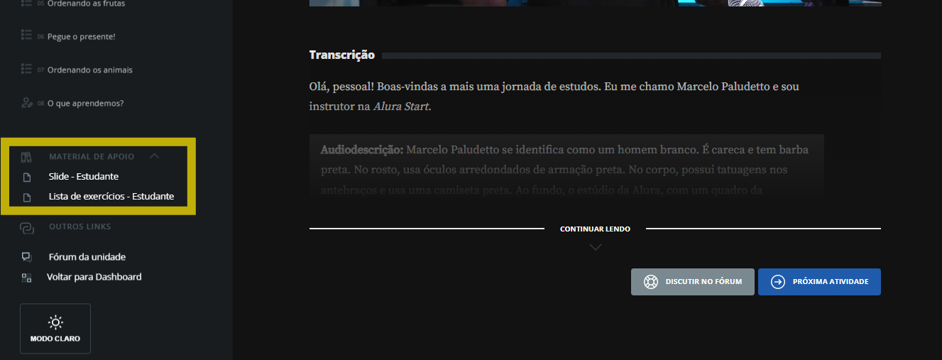 A visão e navegação do estudante na plataforma é muito parecida com a versão dos educadores. A diferença é que os estudantes possuem somente os conteúdos exclusivos do seu ano ou série (por exemplo, conteúdos da 2ª série do Ensino Médio) e do bimestre/semestre que ele está cursando. Já o docente tem acesso ao conteúdo de todas as séries, além das funcionalidades do menu "Painel de Gestão", e unidades para formação de professores.