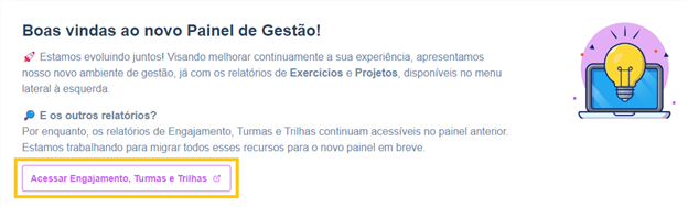 2. Depois selecione - Acessar Engajamento, turmas e trilhas, no centro da página;