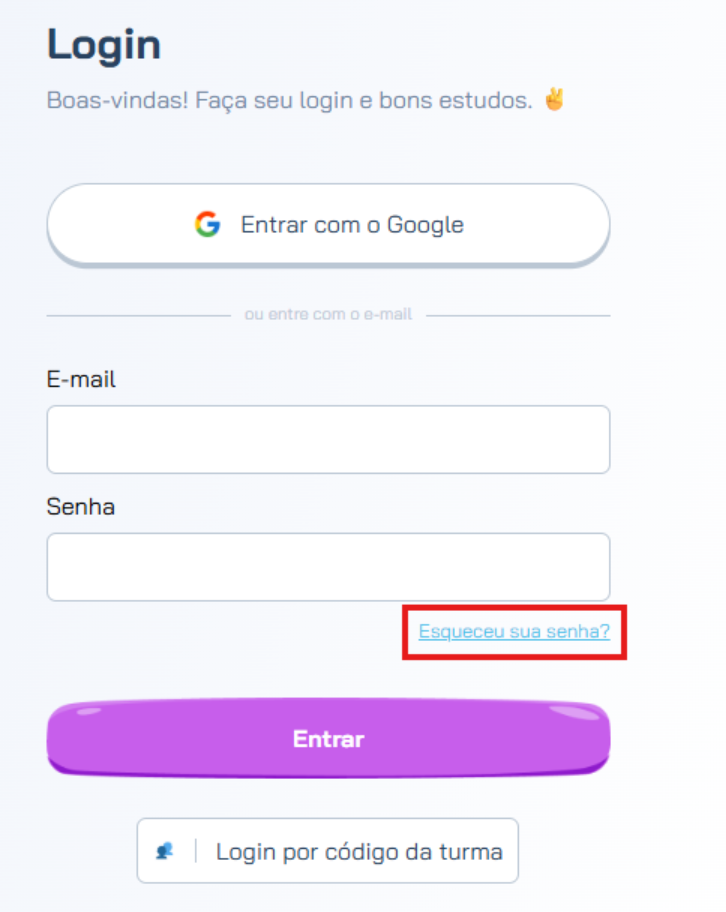 Através dela, você precisará digitar seu e-mail cadastrado que enviaremos um link para definir uma nova senha.