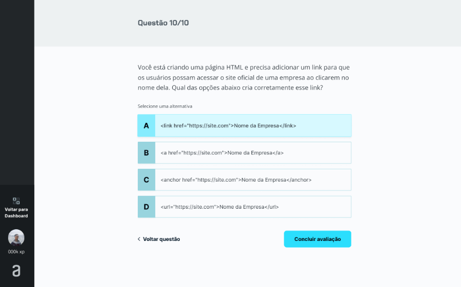Na última questão, o estudante deve escolher uma alternativa e clicar em “Concluir avaliação”.