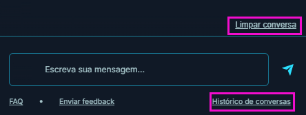 Você pode apagar as mensagens que foram enviadas para a Luri clicando em “Limpar conversa” e, caso deseje vê-las novamente, basta acessar o “Histórico de conversas” (imagem 03).