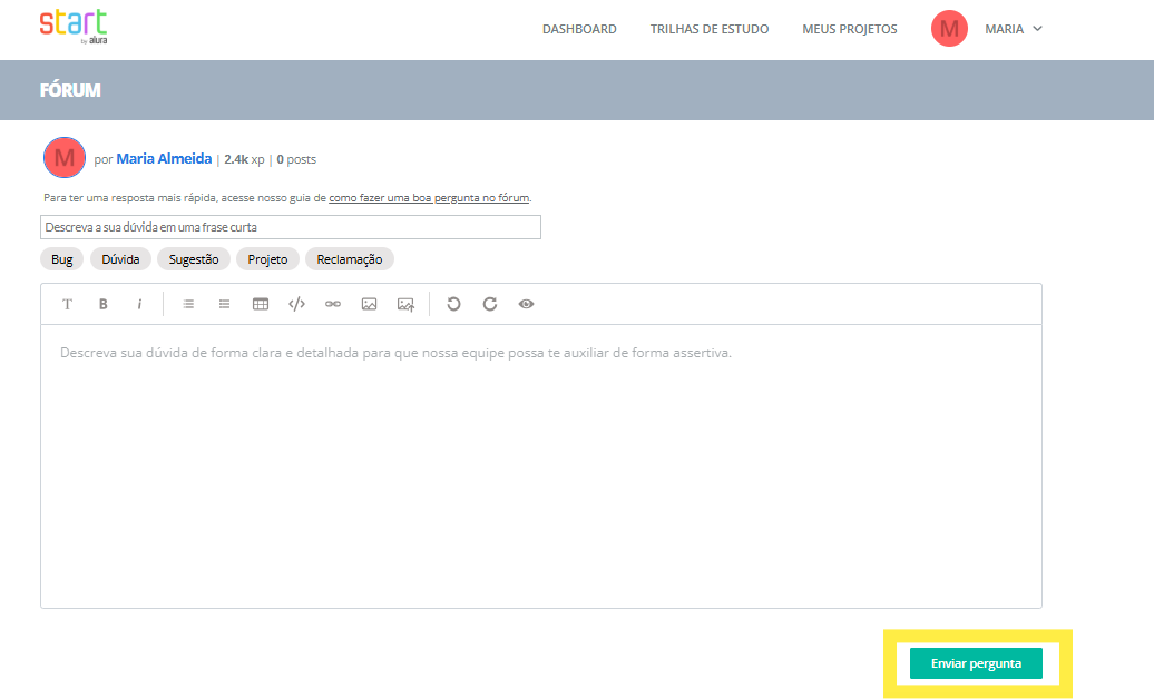 Caso prefira temos um vídeo com um passo a passo de como postar sua dúvida no fórum: