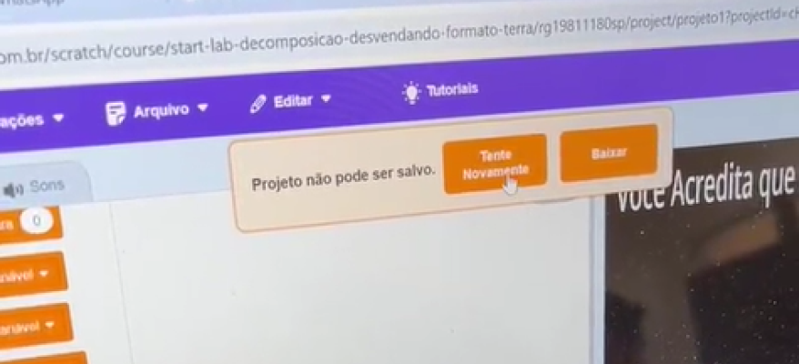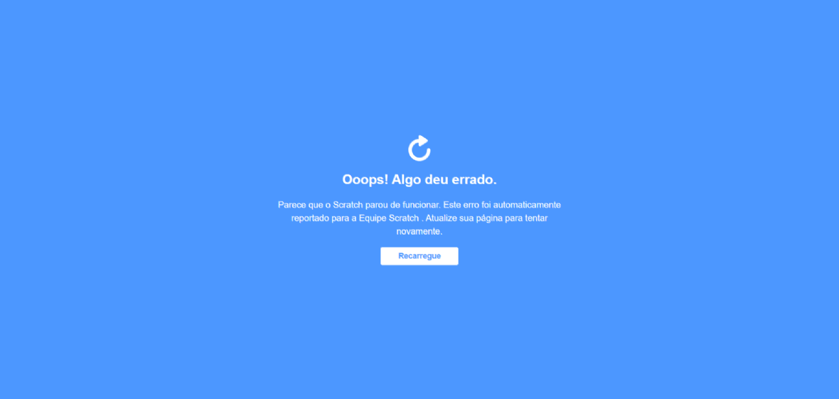 Há duas mensagens de erro que podem aparecer relativas ao carregamento da página. O sistema já indica para o usuário recarregar a página para que o projeto reinicie da última versão salva. São exemplos, as imagens abaixo: